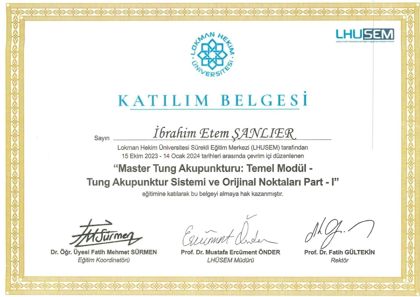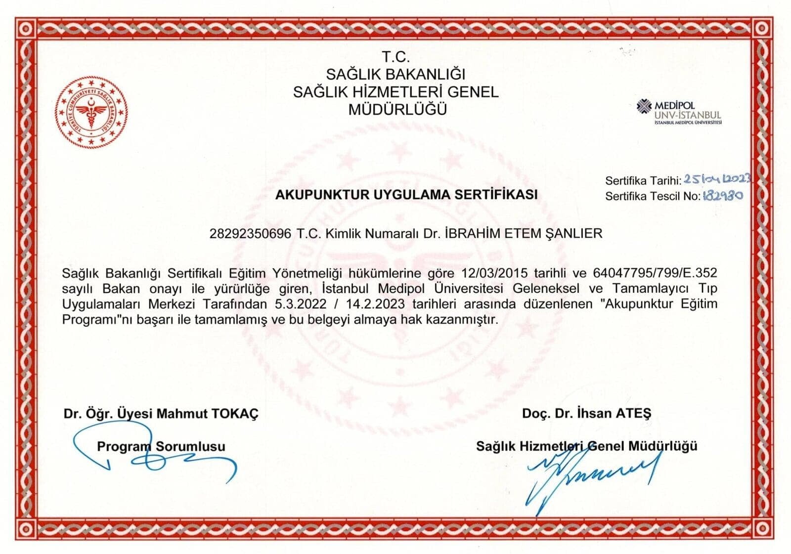 1971 doğumlu olan Dr. İbrahim Etem Şanlıer akupunktur uzmanı, genel tababet ve geleneksel, tamamlayıcı tıp uzmanı olarak çalışmaktadır.