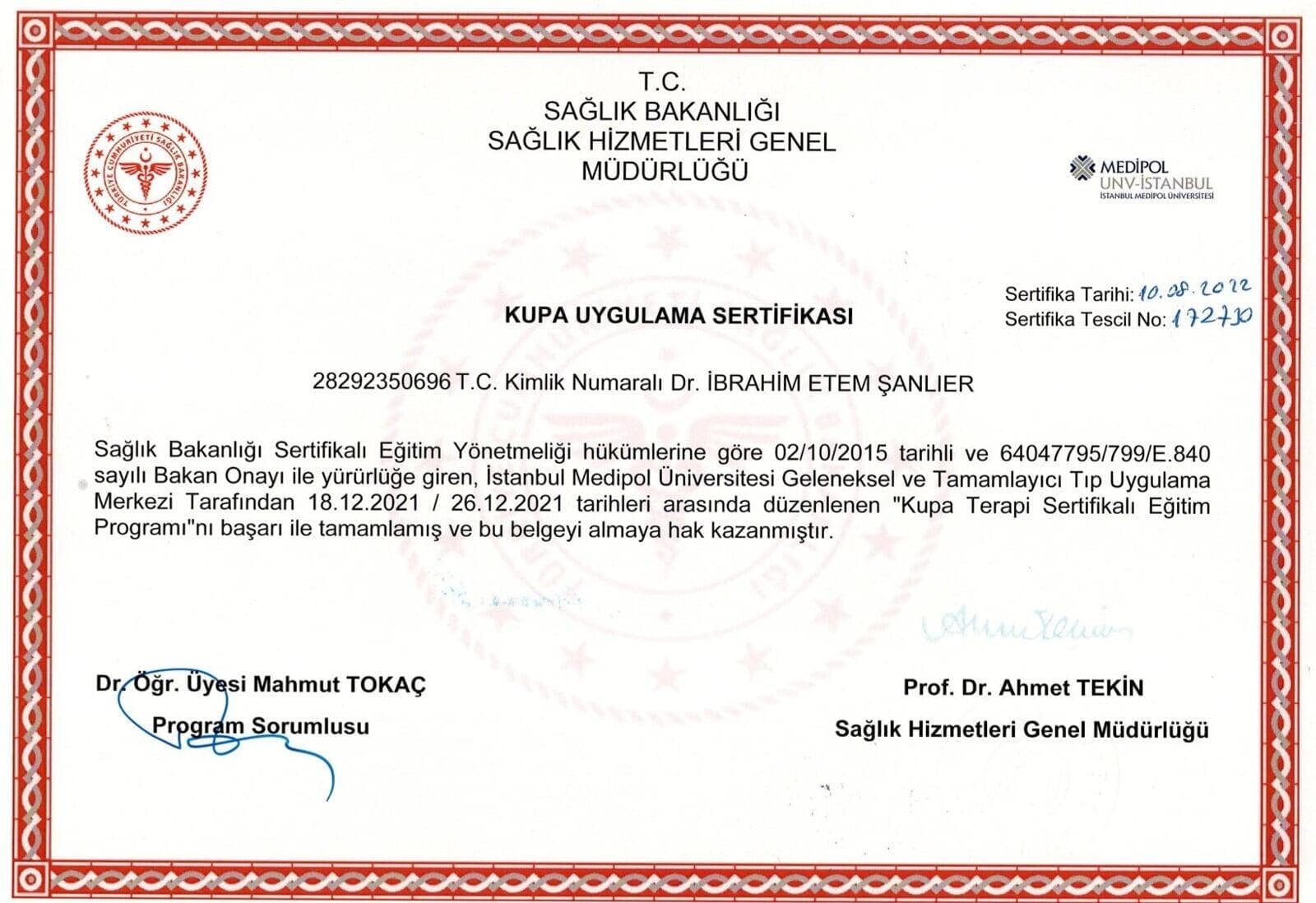 Kupaterapi (Tibbi Hacamat) ve Hyrudoterapi (Tibbi Sülük) Sertifikaları